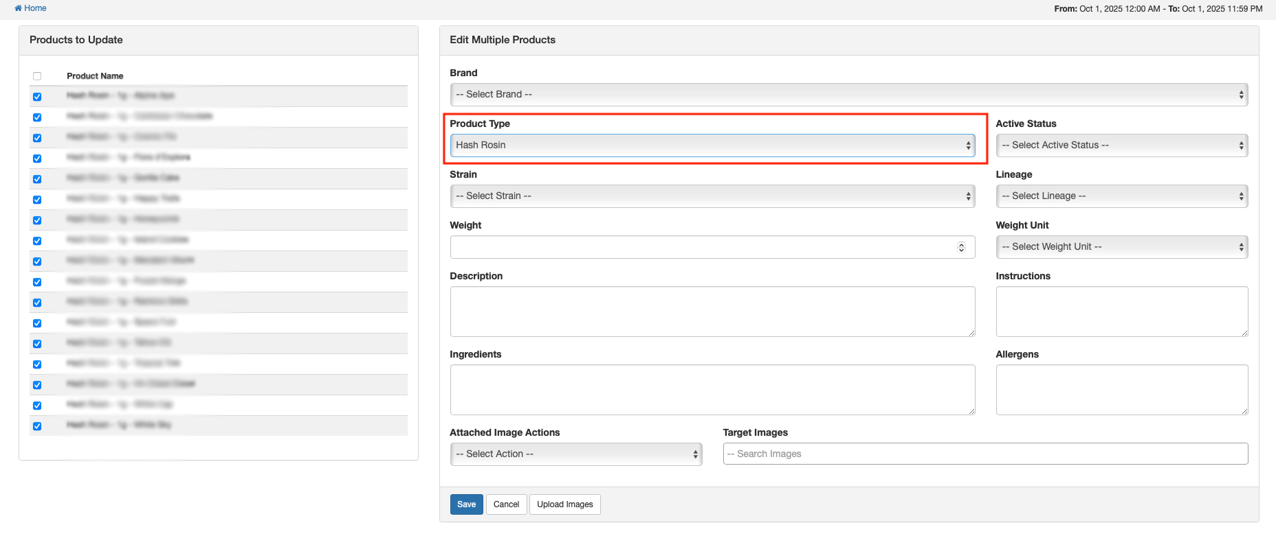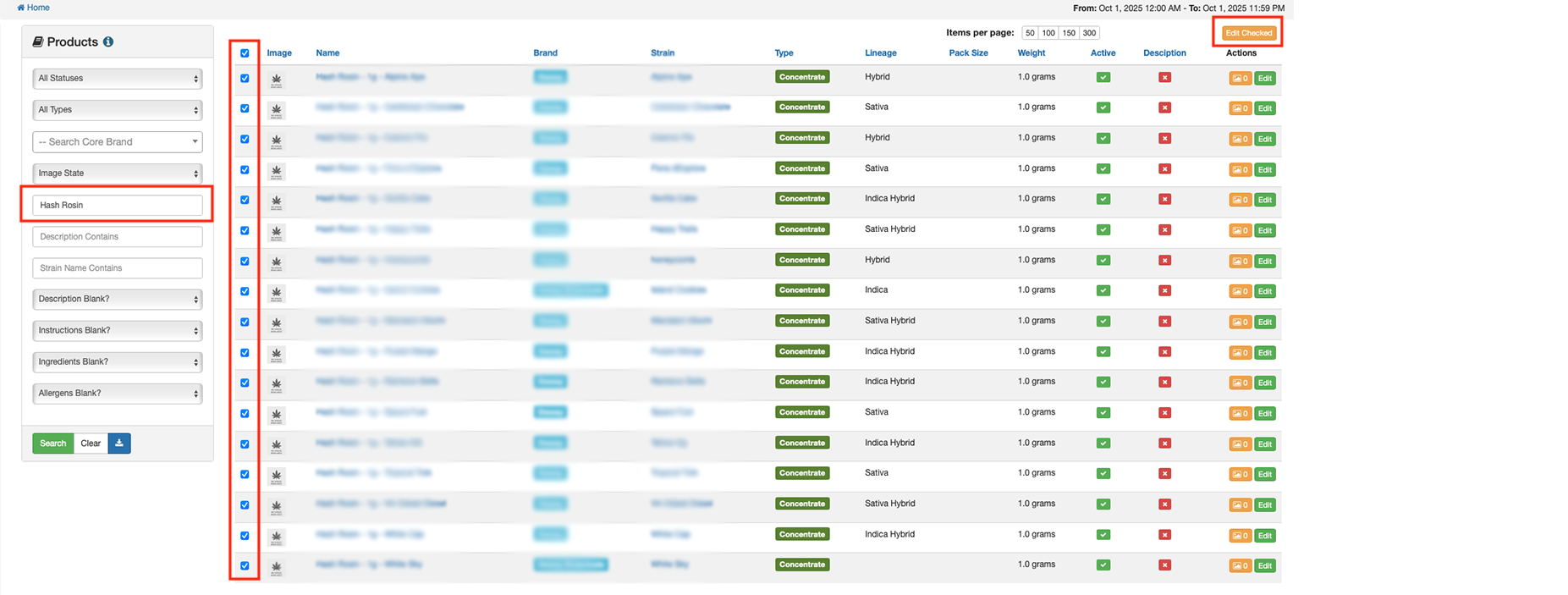 - (i.e. If updating Product Type, you may search on Product Name Contains 'Hash Rosin').