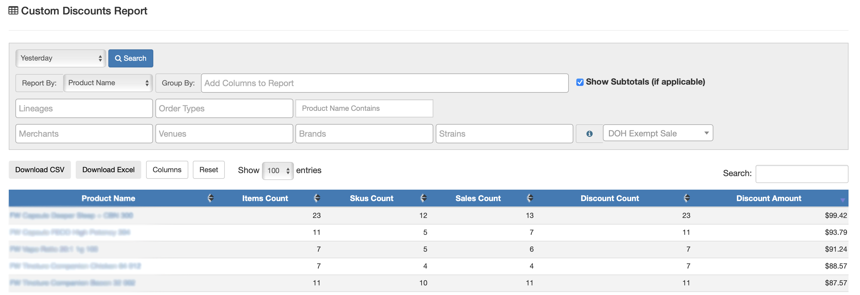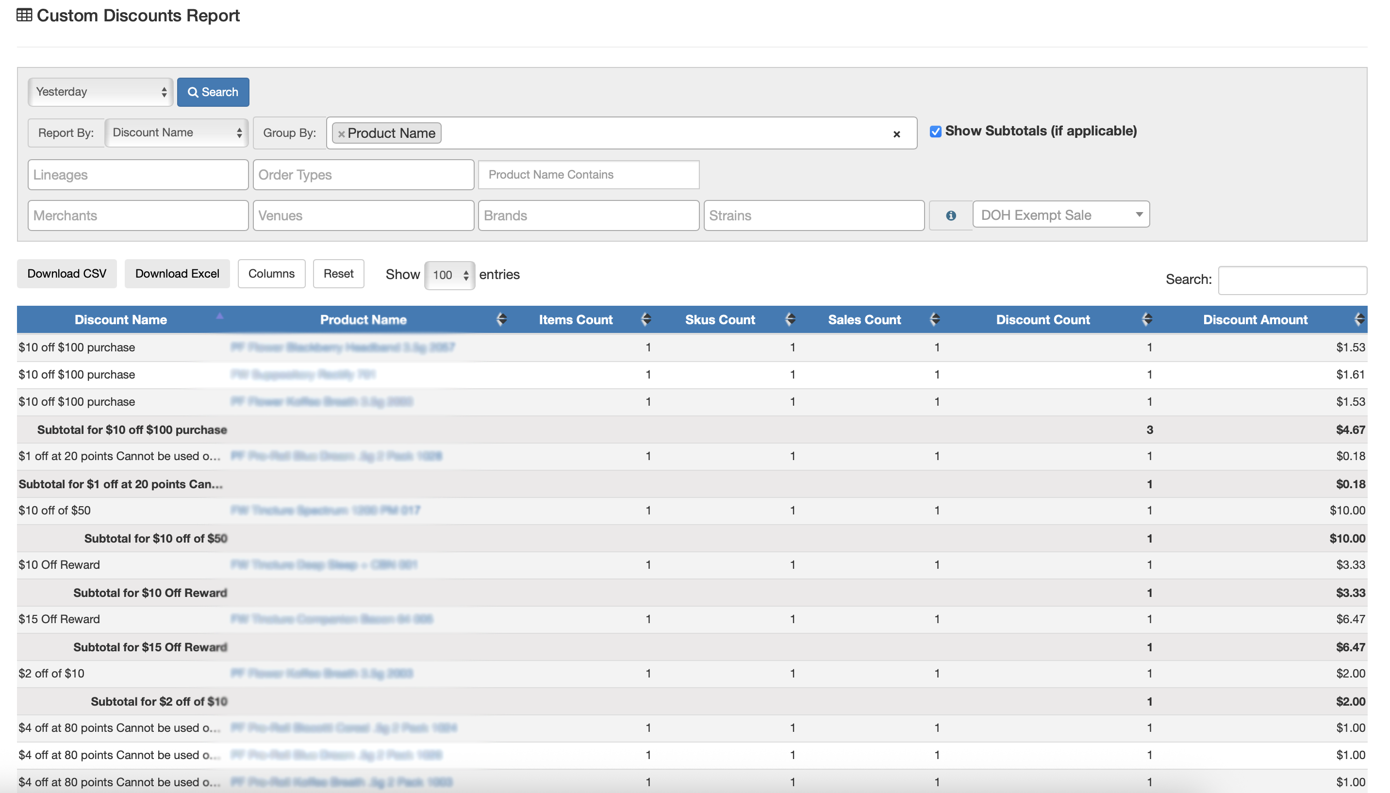 - This report shows which discounts are being applied to specific products. Brands can use it to measure the effectiveness of promotions at the product level, identify which discounts drive sales, and refine pricing or promotional strategies to maximize ROI.