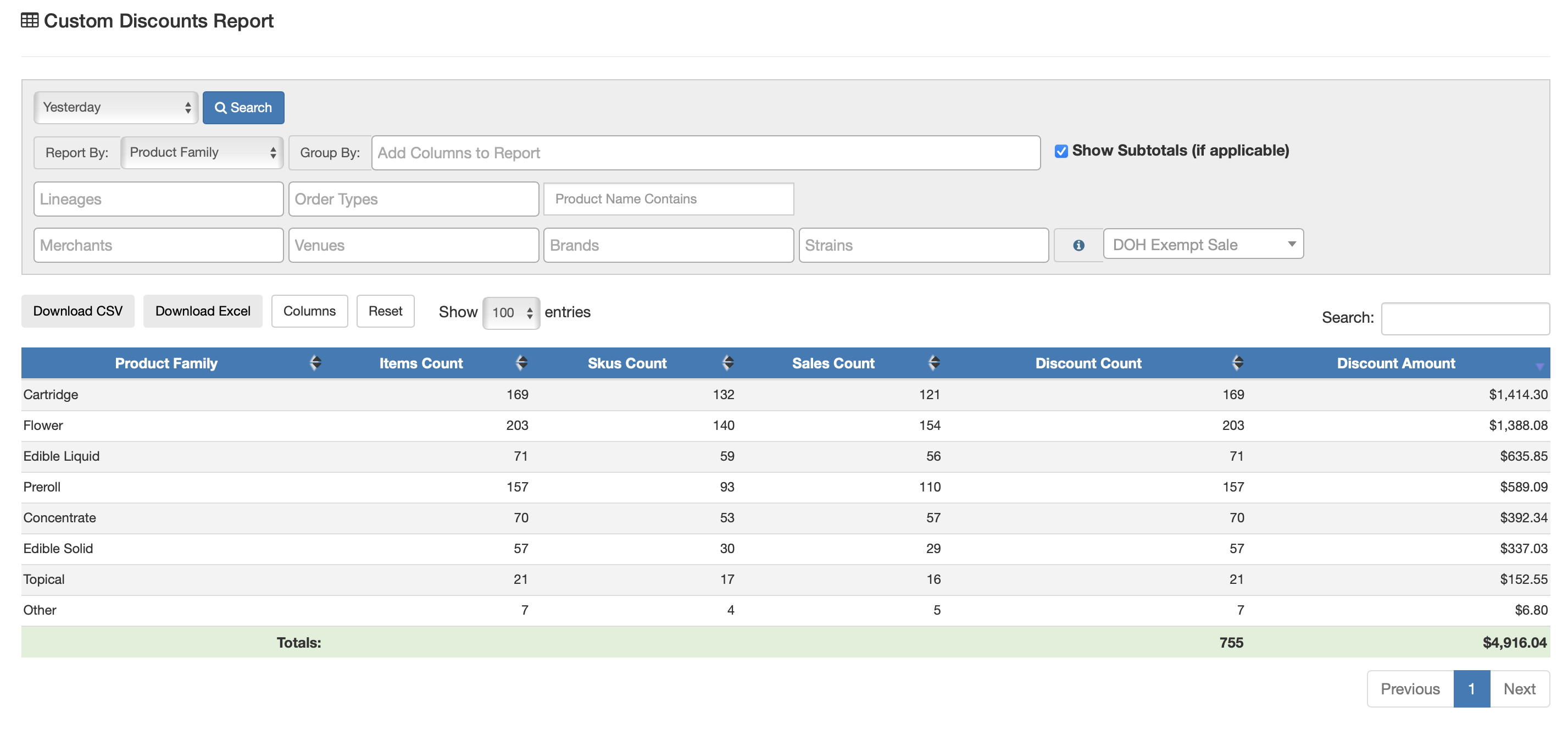 - This report uses retailer data to show how discounts are applied across product families (e.g., flower, prerolls, concentrates). Brands can use it to see which categories benefit most from discounting, compare promotional effectiveness across product types, and adjust strategies to better align discounts with consumer demand.