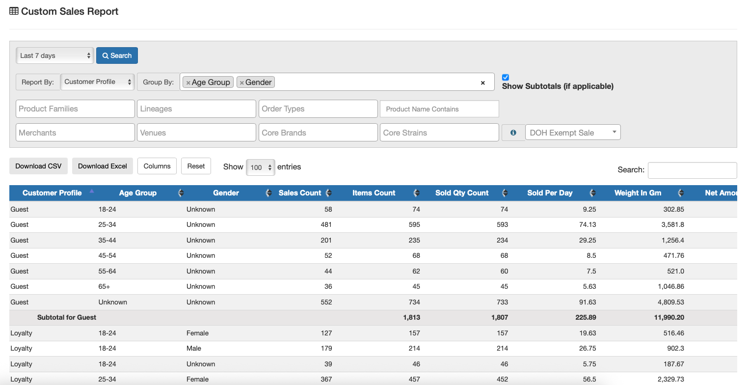 - This report provides insight into who is buying your products, broken down by age group and gender, and segmented by guest/non-members versus loyalty customers. Use it to better understand your audience, tailor marketing campaigns, and align product strategies with customer demographics.