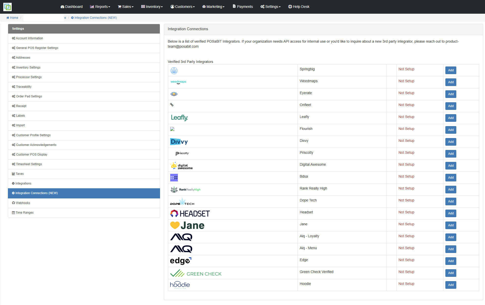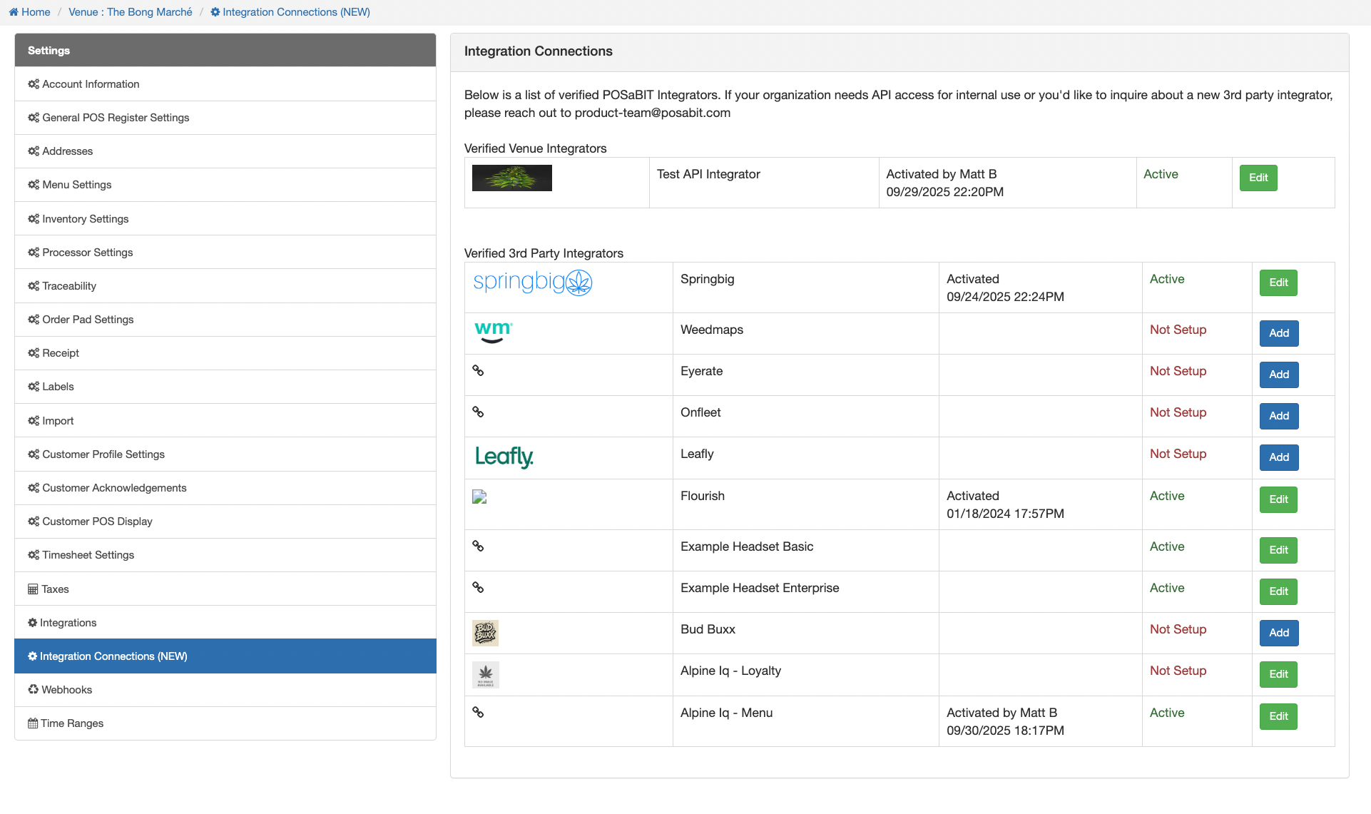 POSaBIT administrators cannot add this on behalf of an integrator through the admin dashboard, as outlined in our policies. We apologize for any inconvenience.