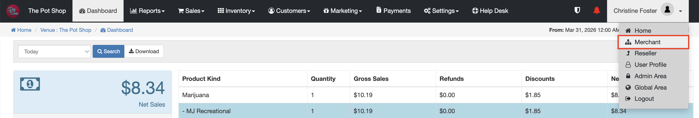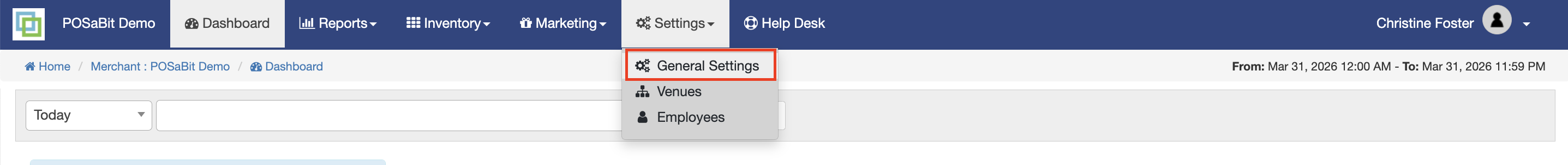 - Navigate to your Merchant settings to configure management options (select user name drop down > Merchant > Settings > General Settings).